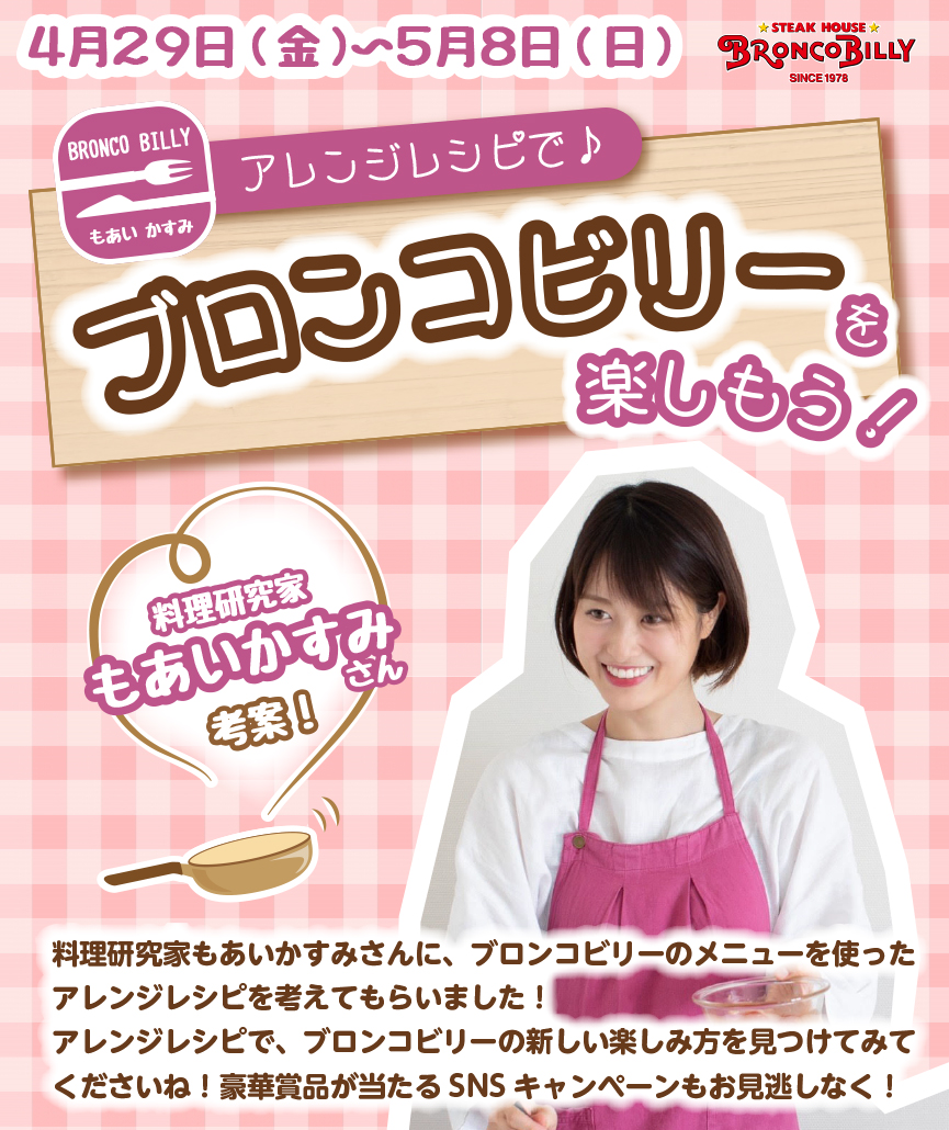 アレンジレシピで♪ブロンコビリーを楽しもう!〜料理研究家もあいかすみさんコラボ〜