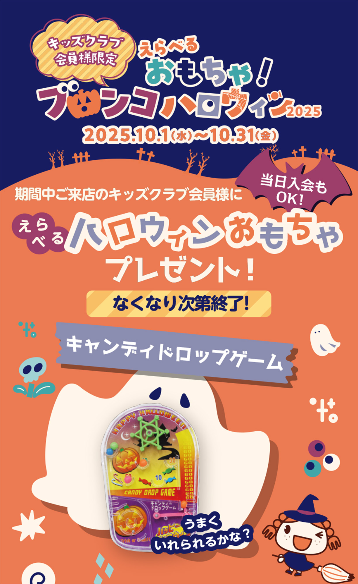 10月1日(水)キッズクラブ えらべるおもちゃ!ブロンコハロウィン2025スタート!