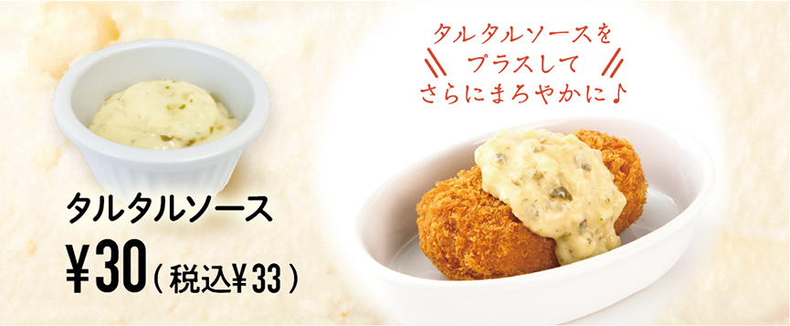 プラス¥30(税込¥33)で、タルタルソースも付けてさらにまろやかな味わいをお楽しみいただくこともできます♪