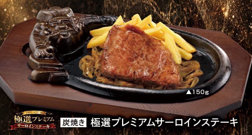 炭焼き極選プレミアムサーロインステーキだけを存分に味わいたい方には、150gから400gまで、4サイズをご用意しています!