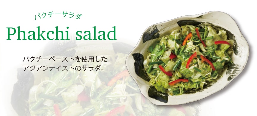 ※産地からのパクチーの供給が不足しており「パクチーのアジアンサラダ」の提供を当面の間、休止させていただきます。