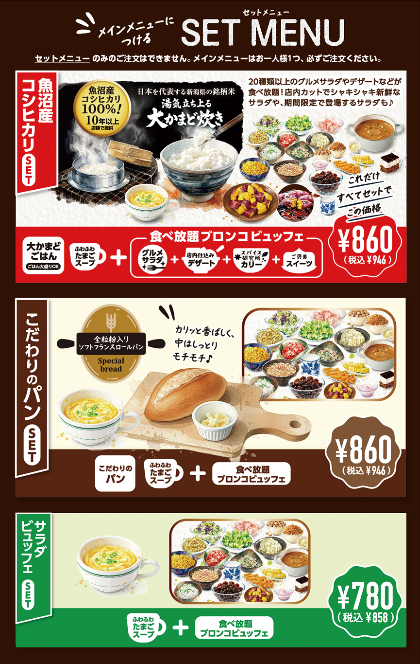 ※ブロンコビュッフェの取り分けはご遠慮ください。