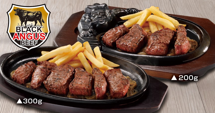 肉の旨みと脂の甘みが楽しめる黒毛アンガスビーフの“ロース”を食べやすいカットステーキにしました。