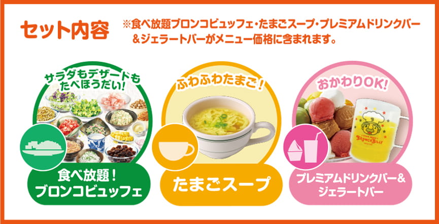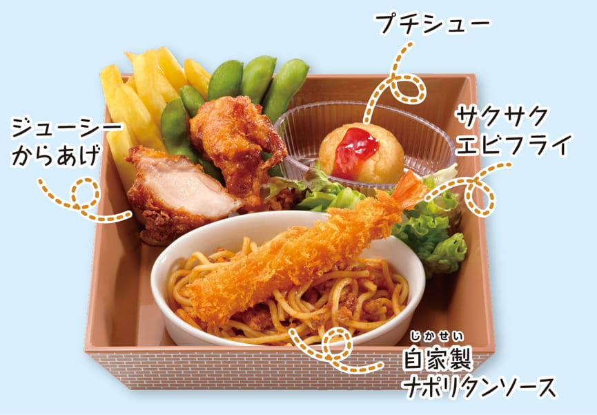 自家製ナポリタンソースのスパゲティー 自家製ナポリタンソースのスパゲティー、サクサクエビフライ♪いろんな味が楽しめます。 ※12歳までのおこさまの特別メニューです。 ※アレルギー表をご用意しております。 ※キッチンでは同一の調理器具・食器・揚げ油を使用し食材を扱っているため、アレルゲンに関する情報は絶対的なものではありません。ご理解の上ご利用ください。 ※ランチタイムの食べ放題ブロンコビュッフェはグルメサラダ、店内仕込みデザートが付きます。 ※ディナータイムの食べ放題ブロンコビュッフェはグルメサラダ、店内仕込みデザート、スパイス研究所カリー、ご褒美スイーツが付きます。 トッピング一覧 エビフライ 100円(税込110円) 果汁100%りんごジュース 100円(税込110円) カテゴリ一覧に戻る