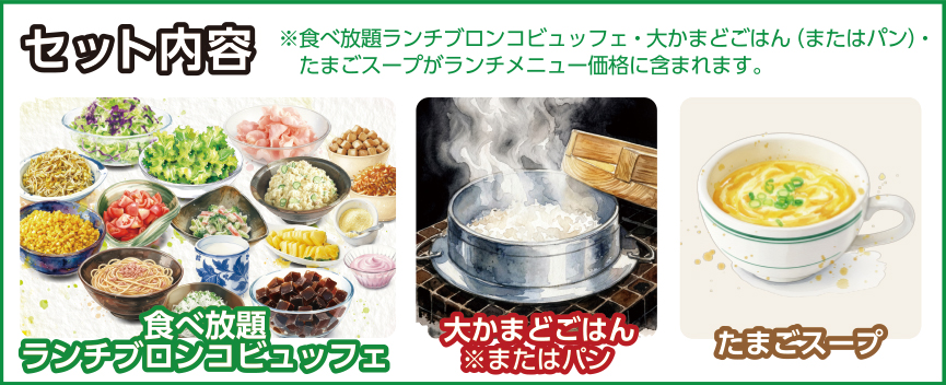 ※季節により提供するランチブロンコビュッフェ、食材が予告なく変更する場合がございます。