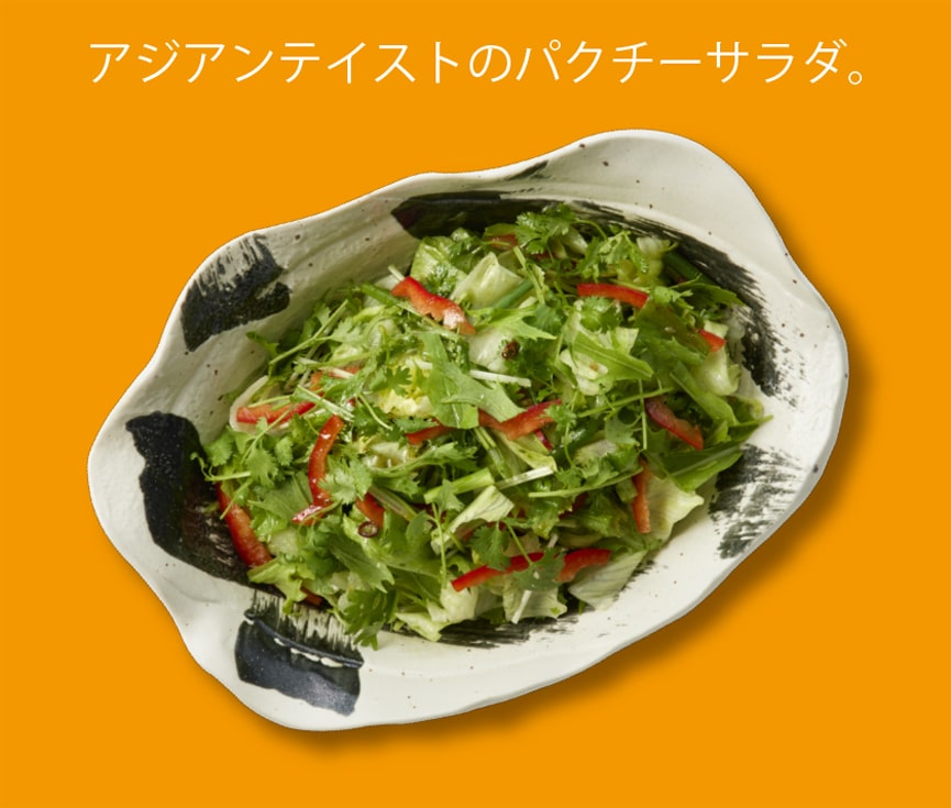 大人気のパクチーを使ったサラダ! 独特の香りが特徴のパクチーを、レタス、ミニネギ、水菜、赤パプリカと一緒に、特製オイルソースで和えました。 エスニックな香りがくせになるサラダです。 「パクチー」とはタイ語で、英語では「コリアンダー」、中国語では「香菜」とよばれ、世界中で親しまれています。 近年パクチー人気が上昇中。パクチー好きを通称「パクチスト」というそうで、とくに女性からの人気が高いようです。 カテゴリ一覧に戻る