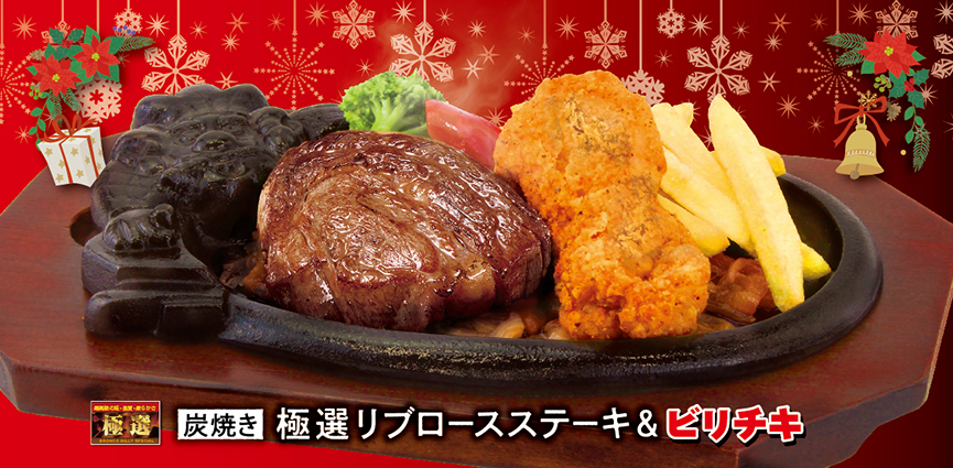 ★炭焼き極選リブロースステーキとビリチキが楽しめるコンビ!