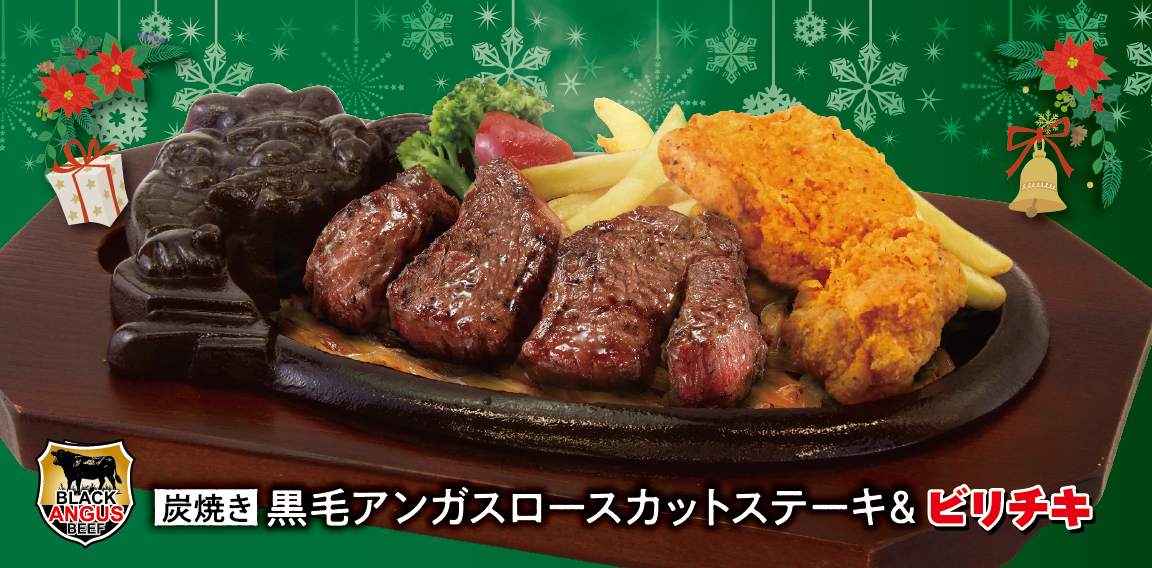 ★炭焼き黒毛アンガスロースカットステーキとビリチキが楽しめるコンビ!